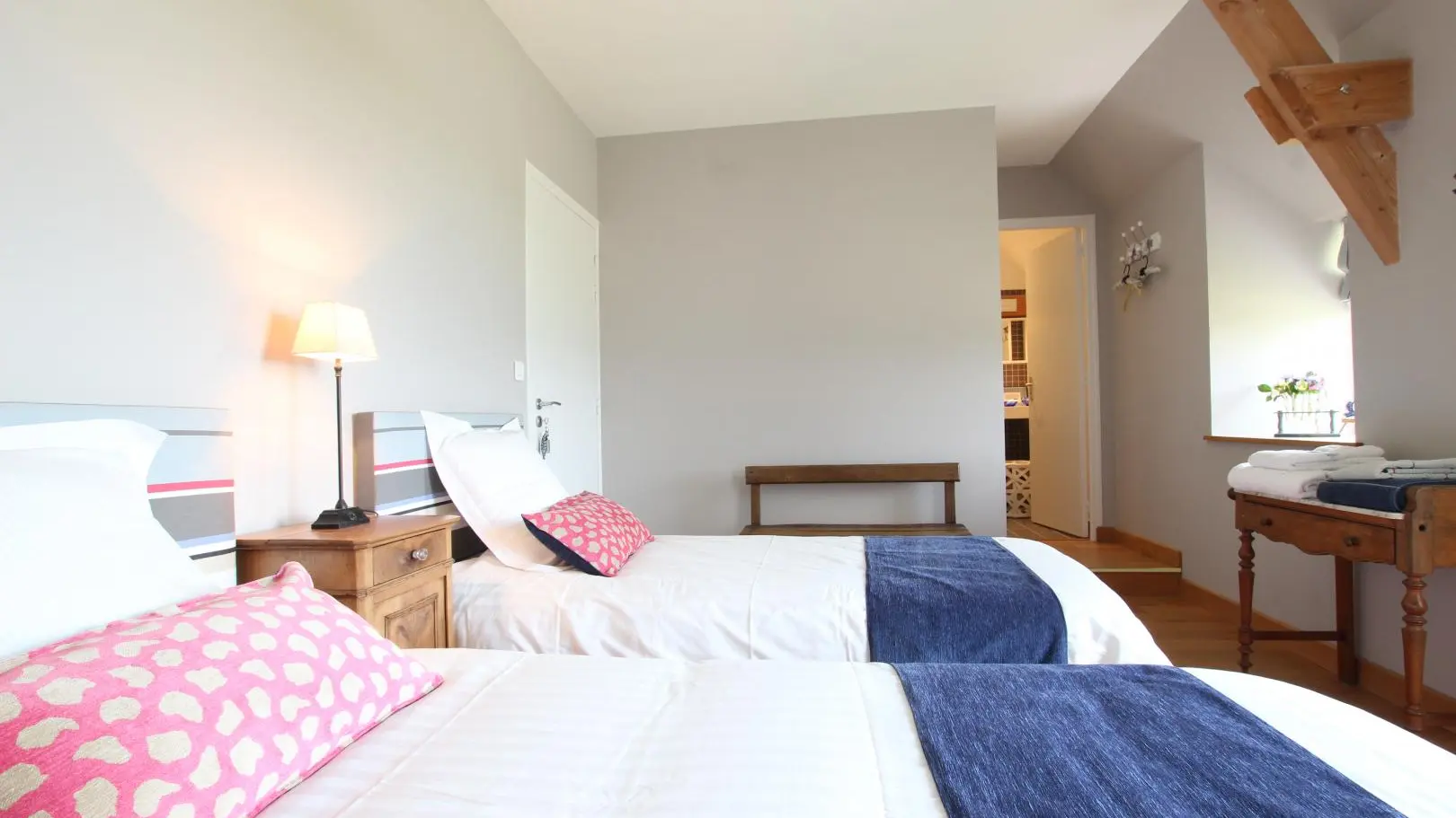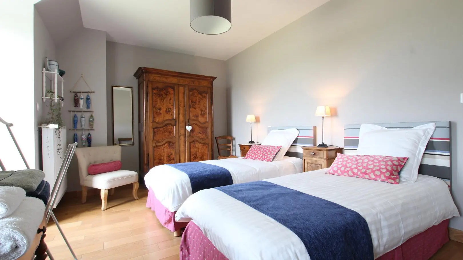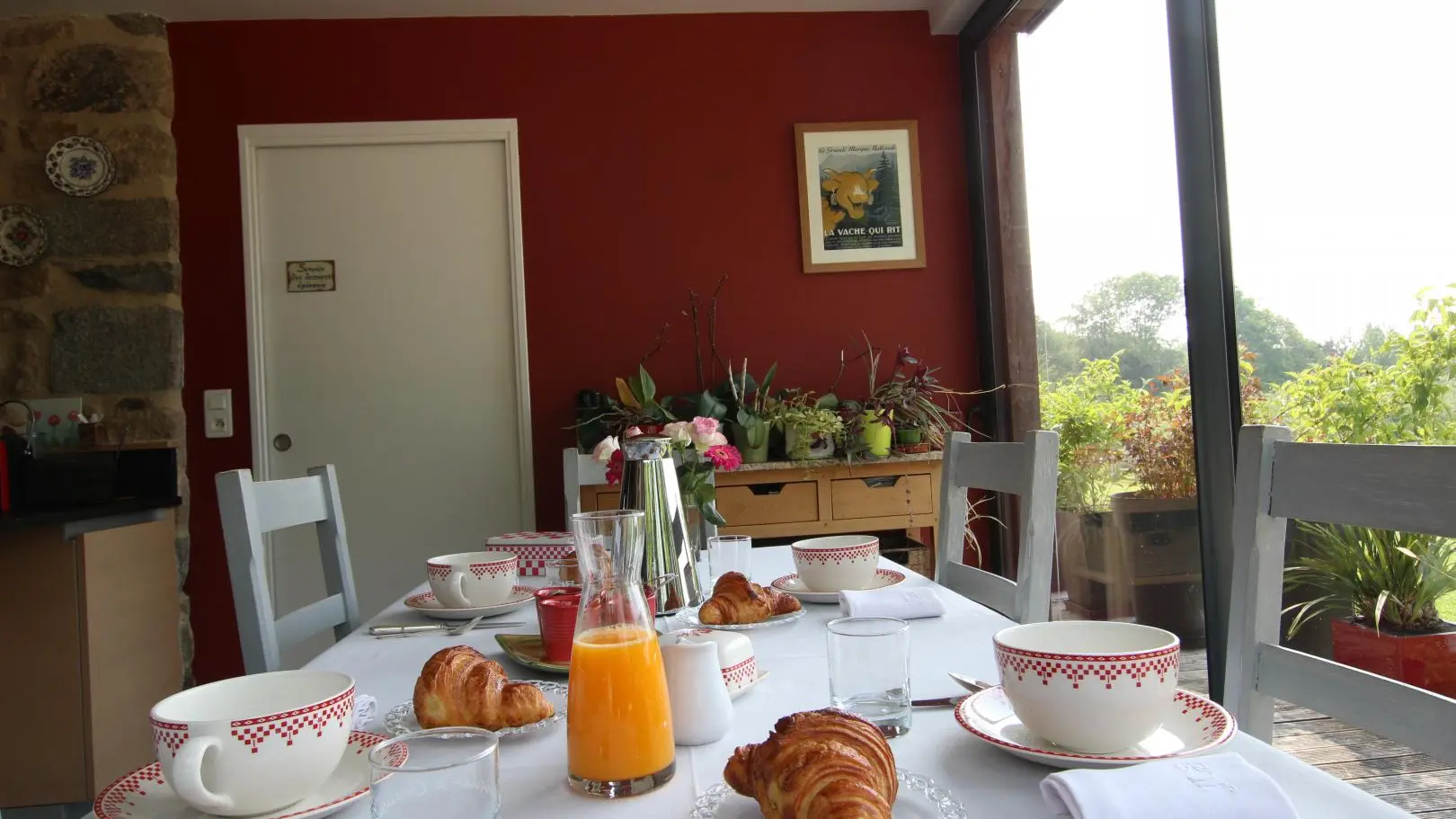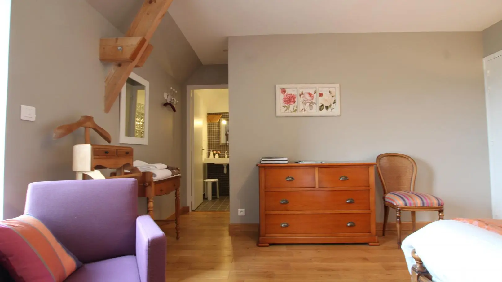 Situated between Granville and Mont st Michel, this former Post House has been renovated with great care: stone walls and wooden floors, large rooms with great bay windows overlooking the Norman countryside... The owners have an environment-friendly approach to their renovation: traditional materials, reclaimed wood, heating and hot water by geothermic system, photovoltaic panels, rainwater collectors... the two vets nowadays spend their spare time doing the things they enjoy most: looking after horses, gardening, reading, decorating... On the first floor 2 bedrooms (1 double bed, 2 twin beds) with private shower room and toilet. Pick up service from station, cabled Internet access.